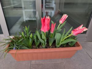 昨年秋、桐沢医院に通院されていた砺波在住のTさんからまたたくさんチューリップの球根をいただいていたので11月に植えていました。